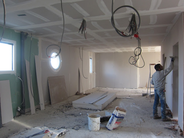 Le doublage de l'étage est terminé. Celui du rez-de-chaussée a commencé dans le séjour.
